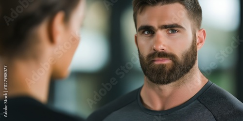 A focused man gazes with intensity, deep in thought, in a stylish studio space, reflecting the concepts of strength, determination, and self-reflection.