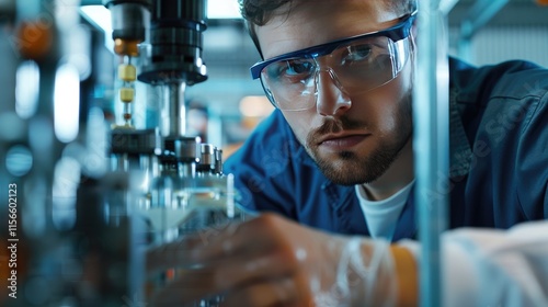 A focused technician works on machinery in a lab setting, showcasing precision and expertise.