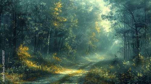 A forest with a road in the middle