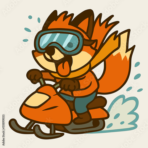 A fox riding a snowmobile with wild goggles.