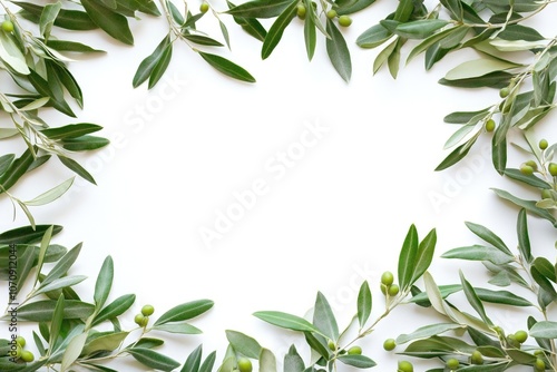 A frame made of olives and leaves on a white background, perfect for a rustic or natural-themed design
