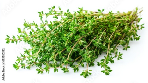 A fresh bunch of thyme with its small green leaves and aromatic scent, Each leaf’s bright color and subtle imperfections captured with precision