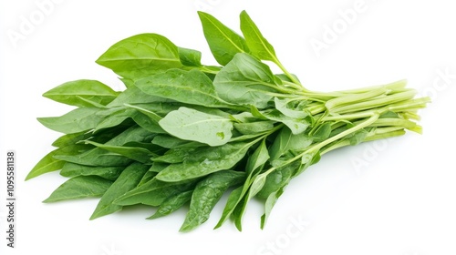 A fresh bunch of water spinach with its vibrant green leaves and hollow stems, Each leaf’s bright color and subtle imperfections captured with precision
