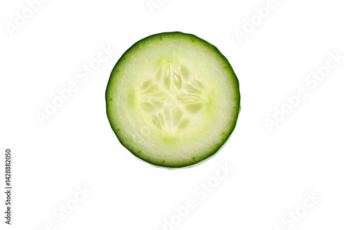 A fresh cucumber slice showcasing its vibrant green color and distinctive seed pattern.