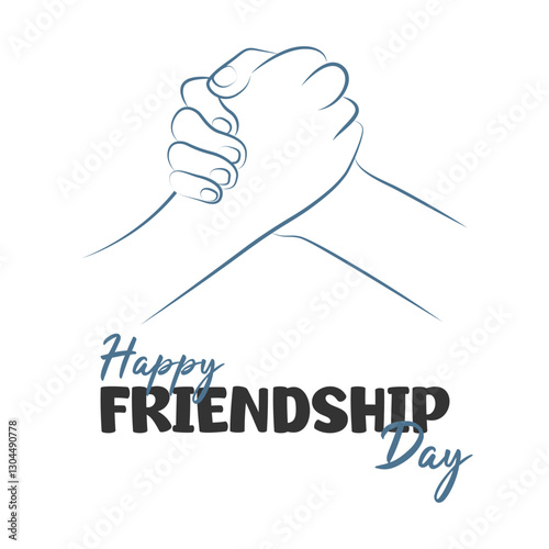 A friendly handshake, a line badge, a friend's hand helping to work in a team. The concept of celebrating Friendship Day. Vector illustration