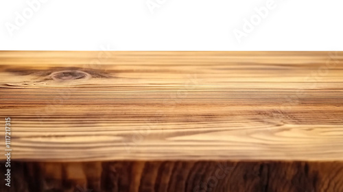 a front view of a dark brown, empty wooden table with white and transparent background, serving as a blank wood table mockup.