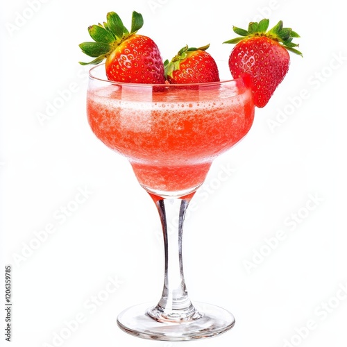 A fruity Strawberry Daiquiri with strawberry garnish, displayed against an isolated white background, pop art style