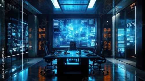 A fully equipped boardroom featuring luxury decor, high-tech gadgets, and a spacious meeting table.