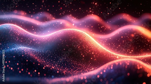 A futuristic abstract background with neon wave lines and bokeh lights, generated by AI to depict technology themes.