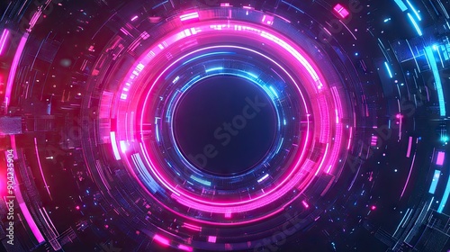 A futuristic background with neon light effects and circular designs, with a blank space in the center for text.