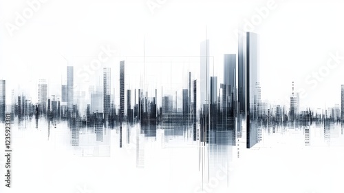 A futuristic bar chart, AI business analytics, circuit design overlay, isolated on white background.