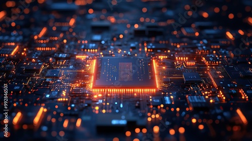 A futuristic circuit board illustration, combining various technology elements to create a digital abstract design.