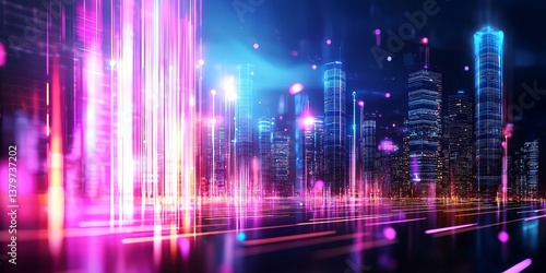A futuristic cityscape, its sleek skyscrapers adorned with glowing streaks that symbolize the city s interconnectedness and the vast flow of data that fuels its growth.