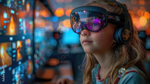 A futuristic classroom where students are interacting with AR displays for enhanced learning experiences
