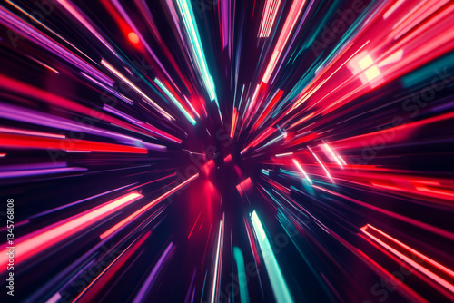 A futuristic, colorful abstract background featuring laser-like energy beams. The sharp, intersecting streaks of neon red, bright teal, and deep violet create a high-energy, sci-fi, and visually