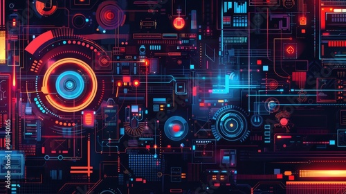 A futuristic computer screen with a glowing eye in the center, suitable for sci-fi or technology-related projects
