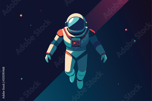 a futuristic cyberpunk-inspired vector astronaut floating in deep space with neon lights reflecting on a dark background, giving a sci-fi and high-tech aesthetic