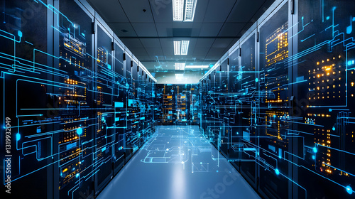 A Futuristic Data Center With Glowing Blue And Orange Network Connections Highlighting The Complex Interconnected Systems Powering Modern Technology