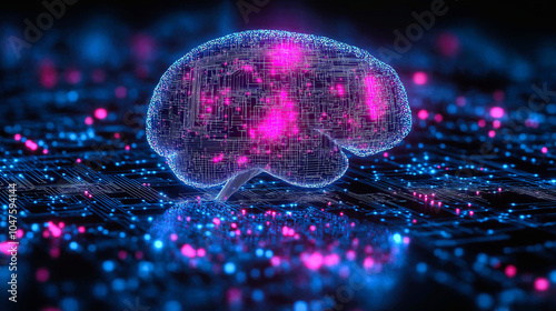 A futuristic depiction of the human brain, rendered as a network of glowing lines and points, highlighting the potential of artificial intelligence.