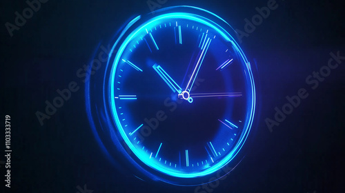 A futuristic digital clock light effect. A glowing silhouette of a clock representing time, Ai