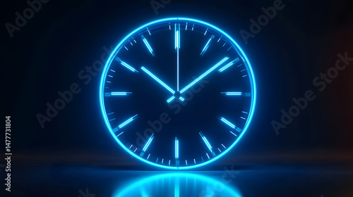 A futuristic digital clock light effect. A glowing silhouette of a clock representing time. Background laser blue neon clock vector illustration