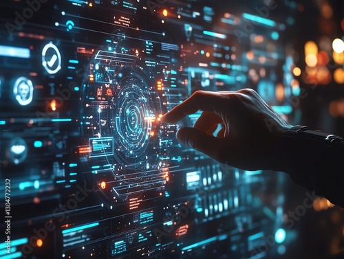 A futuristic digital employee recruitment scene, with a manager s hand selecting employee icons, human resources concept, sharp digital details, highdefinition realism, 4K UHD