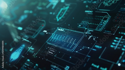 A futuristic digital health interface with holographic medical data against a dark background, macro shot, Minimalist style