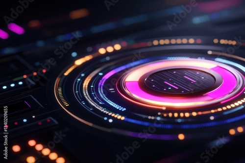 A futuristic digital interface with vibrant colors and circular patterns, suggesting advanced technology and data visualization.