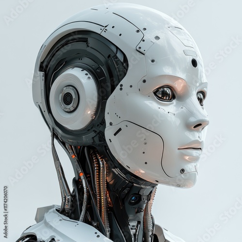 A futuristic female robot head, sleek design, intricate mechanical details, artificial intelligence.