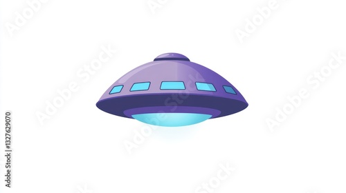 A futuristic flying saucer with glowing lights and windows perfect for science fiction themes