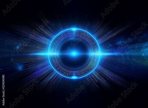 A futuristic, glowing blue circular interface with radial light streaks against a dark background. It evokes feelings of technology, speed, and innovation.