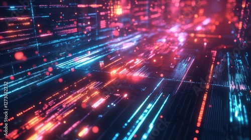 A futuristic image of fiber optic cables glowing in vibrant colors, representing high-speed technology connections and digital networks.