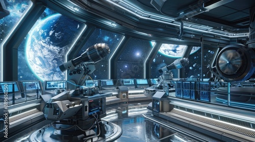 A futuristic observatory with advanced telescopes and astronomical displays.