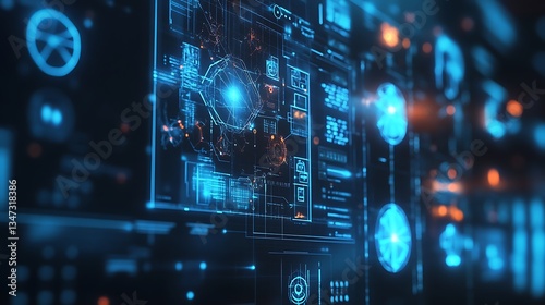 A futuristic physics lab with digital interfaces for exploring the behavior of subatomic particles in extreme conditions