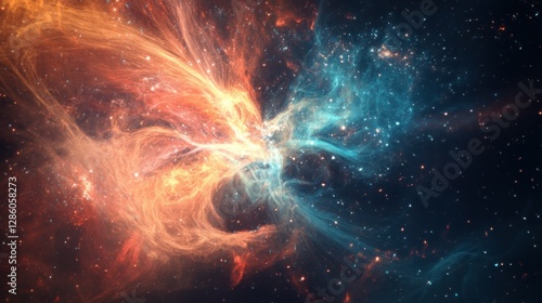 A futuristic quantum explosion ignites a nebula, bending time and light into surreal formations