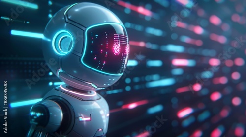 A futuristic robot with a neon-lit background, symbolizing advanced technology and AI in a high-tech digital environment.