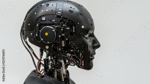A futuristic robotic head showcasing intricate circuitry and design, emphasizing advancements in artificial intelligence and technology.