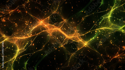 A futuristic tech-inspired background with glowing neon nodes and lines in Tangerine, Chartreuse, and deep black, symbolizing innovation and connectivity