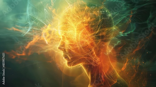 A futuristic visualization of a persons aura, depicted through advanced biofeedback technology