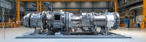 A gas turbine engine highlights its essential role in generating electricity at power plants, showcasing the efficiency and reliability required to meet energy demands during times of crisis.