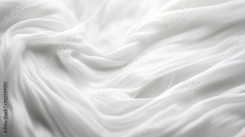 A gentle and abstract flow of soft white fabric creates a tranquil and serene atmosphere, inviting peaceful reflections