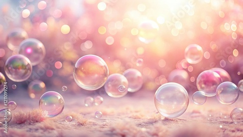 A Gentle Breeze of Sparkling Bubbles Floating on a Soft, Pastel Surface at Sunset