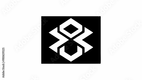 a geometric, abstract logo design featuring interlocking shapes in black and white, creating a symmetrical and modern appearance