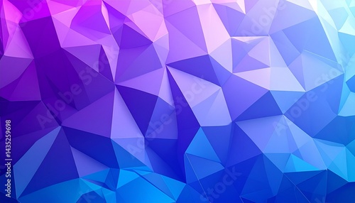 A geometric low-poly background with sharp triangular facets, transitioning in cool blue and purple gradients.