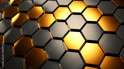 A geometric tessellation of metallic hexagons, creating a futuristic honeycomb matrix for modern designs