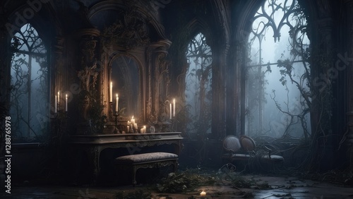 A ghostly, skeletal face with hollow eyes and an open mouth emits a haunting aura,