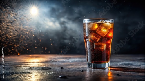 A glass filled with cold cola, surrounded by a ring of condensation