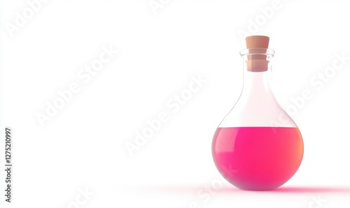 A glass flask filled with vibrant pink liquid stands on a white background, suggesting a scientific experiment