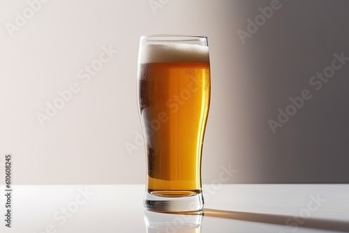 A glass of beer on a light background with selective focus. Generative AI