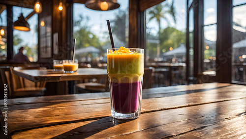 a glass of juice with a straw and a straw in it.